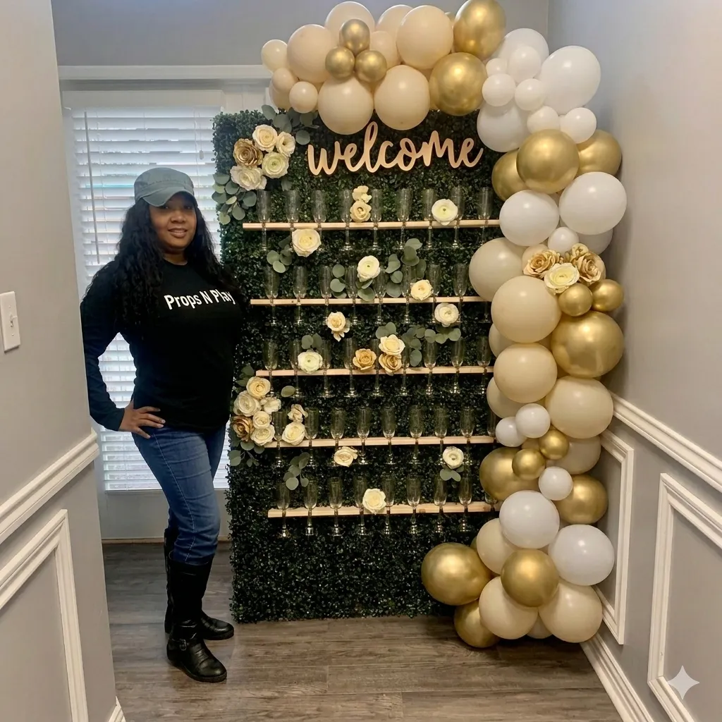 Our collection features standout pieces like our signature champagne walls, elegant backdrops, and curated props designed to elevate your event and create stunning photo moments.